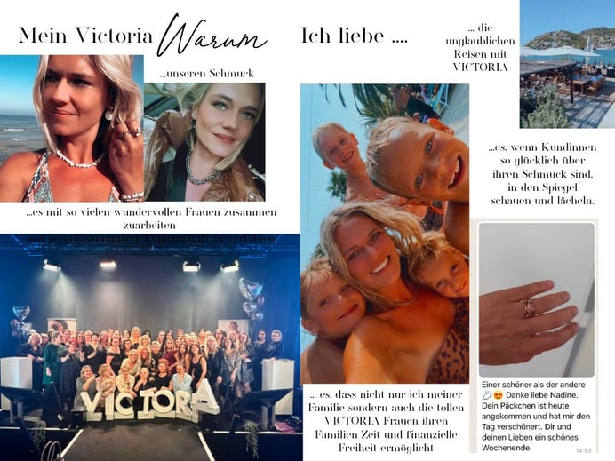 Was ich an meinem Job als Stylistin, Groupleaderin und Salesleaderin bei VICTORIA liebe, ist nicht einfach in ein paar Worte oder einige Bilder zu fassen, denn ich könnte Tausende Fotos zeigen, 100te Geschichten erzählen und einen ganzen Abend damit füllen, warum ich froh bin seinerzeit die Entscheidung getroffen habe mich zunächst nebenberuflich, dann hauptberuflich selbständig zu machen.